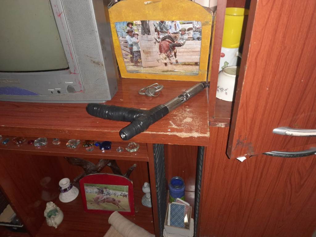 Al acercarse personal policial al domicilio citado, son atendido por el sindicado Ramiro Parra, mientras del interior se escucha pedido de auxilio de dos mujeres, saliendo de la casa Alejandra Parra (23) hermana de sindicado, quien hace pasar al personal policial al domicilio y muestra un arma de fuego de fabricación casera arriba de un modular.
