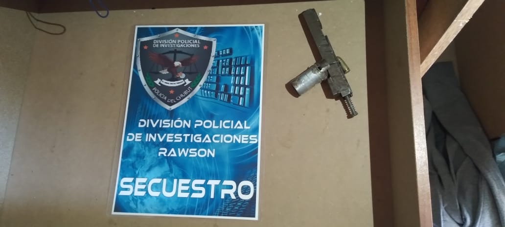 A las 13.20 horas, en la capital provincial, funcionarios de la división policial de investigaciones Rawson diligenciaron un allanamiento en el Barrio 32 viviendas, sobre calle Alfredo Palacios al 400, lugar en el que se domicilia un sujeto de apellido Jaramillo. Como resultado del trabajo desarrollado por los investigadores se logró incautar un arma de fuego de fabricación casera con capacidad de percusión de cartucho Calibre 9mm.