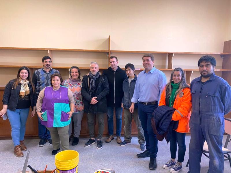 El intendente de Rawson, Damián Biss, estuvo este miércoles en la Escuela N° 776 de Playa Unión, donde la Municipalidad, con la mano de obra de personal de Obras Públicas, realizó durante el receso invernal remodelaciones en la biblioteca.