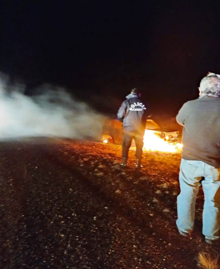 El siniestro se produjo esta madrugada a las 03.10 hs, lo que provocó la intervención policial en un vuelco y posterior incendio de un rodado sobre ruta provincial N° 2 a 12 km aproximadamente de Puerto Pirámides.