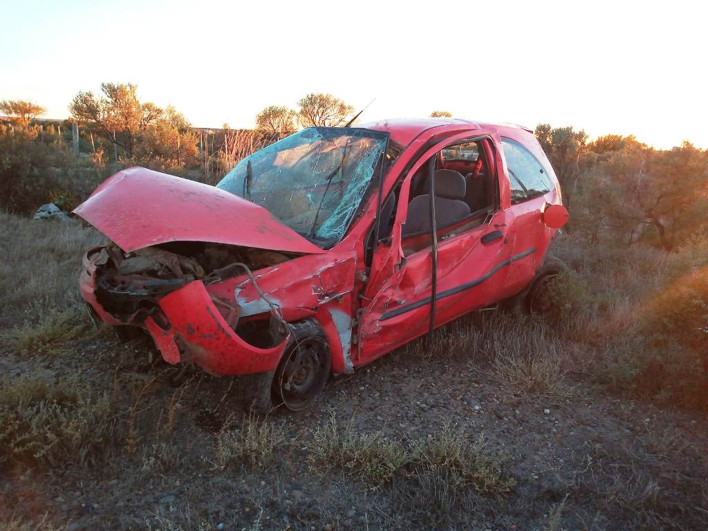 Como consecuencia del fuerte impacto que sufrió el rodado tras salir del camino, sus dos ocupantes salieron despedidos del habitáculo.